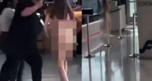 সম্পূর্ণ নগ্ন, শরীরে একটা সুতোও নেই! বিমানবন্দরে তাণ্ডব মহিলার…গায়ে গেঁথে দিল পেন্সিল, রক্তে ভাসল সব বিমানবন্দরে ঢুকে হঠাৎই নিজের জামাকাপড় খুলতে শুরু করে দিলেন এক মহিলা৷ তারপর সম্পূর্ণ নগ্ন হয়ে ঘুরে বেড়াতে থাকলেন গোটা চত্বরে৷ এখানেই শেষ নয়, তারপরেই অদ্ভুত আচরণ করতে শুরু করলেন ওই মহিলা৷ জল ছুঁড়তে থাকলেন যাত্রীদের গায়ে৷ এমনকি, বিমানবন্দরের কর্মীরা তাঁকে আটকাতে গেলে তাঁদের উপরে সূচালো …